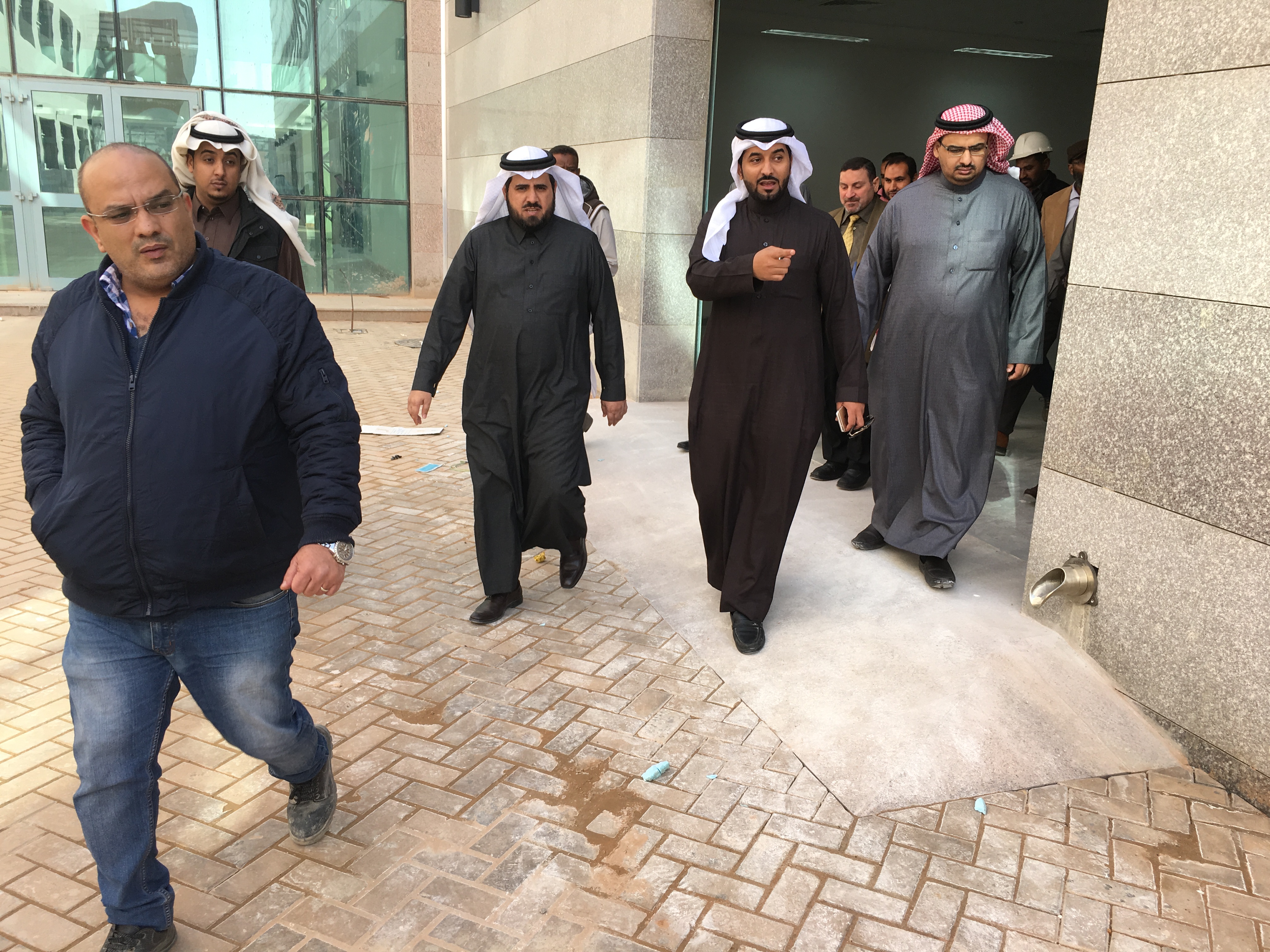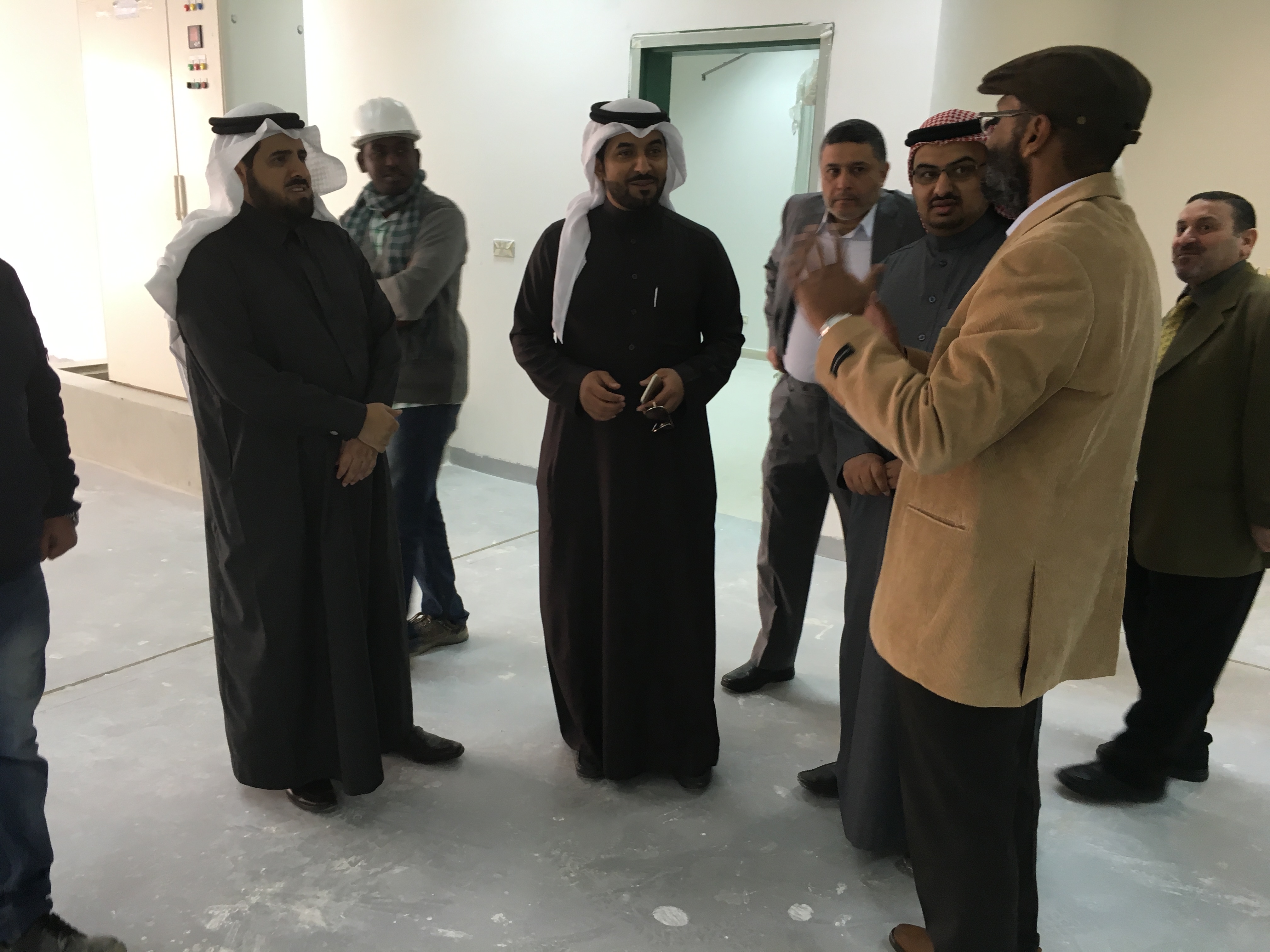 وكان في استقبال الوفد سعادة المهندس عبد العزيز الجاسر ممثل إدارة المشاريع بالجامعة الذي أعطى وصف مختصر عن مراحل تنفيذ المشروع والذي أوشك على الانتهاء بحضور ممثل عن الشركة المنفذة للمشروع موضحاً للوفد فيما إذا كان هناك متطلبات أخرى تحتاجها الكلية قبل التسليم النهائي للمشروع.