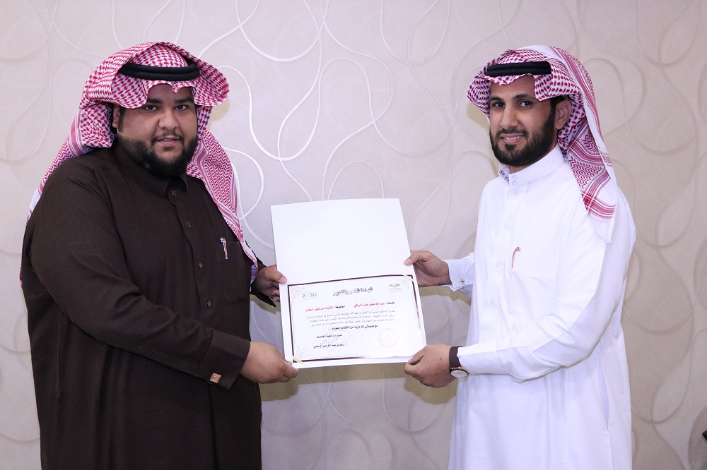 انطلاقاً من دورها في رفع كفاءة الأداء الإداري لموظفي الكلية ، أقامت كلية الهندسة ممثلة في إدارة الكلية وذلك يوم الأحد الموافق 29 / 3 / 1439 هـ تكريماً للموظفين المتميزين بالكلية ، جاء ذلك عقب اجتماع ترأسه سعادة مدير إدارة الكلية الأستاذ/ رعد بن عبدالله آل معدي ، حيث هنأ سعادته الموظفين المكرمين ومتمنياً لهم دوام التوفيق والسداد.