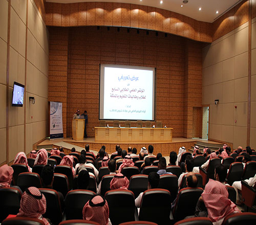 برعاية عميد كلية الهندسة الدكتور محمد بن سعيد القحطاني أقامة كلية الهندسة بالتعاون مع عمادة شؤون الطلاب اللقاء التعريفي بالمؤتمر العلمي الطلابي السابع والذي تقيمه وزارة التعليم في المدينة المنورة بتاريخ 7-10/2/1438هـ،. في بداية اللقاء تم عرض فلم وثائقي عن مشاركات كلية الهندسة في الاعوام السابقة في المؤتمر العلمي الطلابي الرابع والخامس والسادس حيث تم استعراض الانجازات التي تم تحقيقها عبر وصول عدد من طلاب كلية الهندسة الى مراكز متقدمة ومنها المركز الاول الذي حققه الطالب إبراهيم بن عوين في فعالية اشرحها. تلى ذلك محاضرة أمين المؤتمر العلمي بعمادة شؤون الطلاب الدكتور/ عمر بن محمد دين والتي شملت التعريف باهداف المؤتمر ومحاورة في مجال صناعة الأعمال، ومحور الأبحاث، ومحور الابتكار والمشاريع الصغيرة وخدمة المجتمع، وكذلك المحور الرابع الفعاليات المصاحبة. ويندرج تحت هذه المحاور العديد من المسارات للمشاركات الطلابية. كذلك تم تسليط الضوء على طرق المشاركة في المؤتمر والذي يمر عبر مراحل ابتداء بالمنافسة على مستوى الكلية ومن ثم الجامعة وصولا الى المنافسة في المؤتمر على مستوى الجامعات السعودية. في نهاية اللقاء شكر عميد كلية الهندسة الدكتور محمد بن سعيد القحطاني نيابة عن منسوبي وطلاب الكلية عمادة شوؤن الطلاب على جهودهم وعملهم المتميز في اطلاع الطلاب على سبل المشاركة في مثل هذه الفعاليات المهمة للطلاب بهدف ابراز المواهب المبدعة والابتكارات الطلابية. كذلك حث عميد الكلية الطلاب واعضاء هيئة التدريس بالكلية على المشاركة بكافة فعاليات المؤتمر خاصة ومنهم المميزين والمبدعين حيث يعتبر المؤتمر فرصة عظيمة بالنسبة لهم، شاكرا معالي مدير الجامعة على اهتمامه وحرصه ان يكون لهذا المؤتمر آثاره الإيجابية على الجامعة بشكل عام والطلاب بشكل خاص، مشيراً للدعم المعنوي والمادي الذي يقدمه معاليه للمميزين منهم.