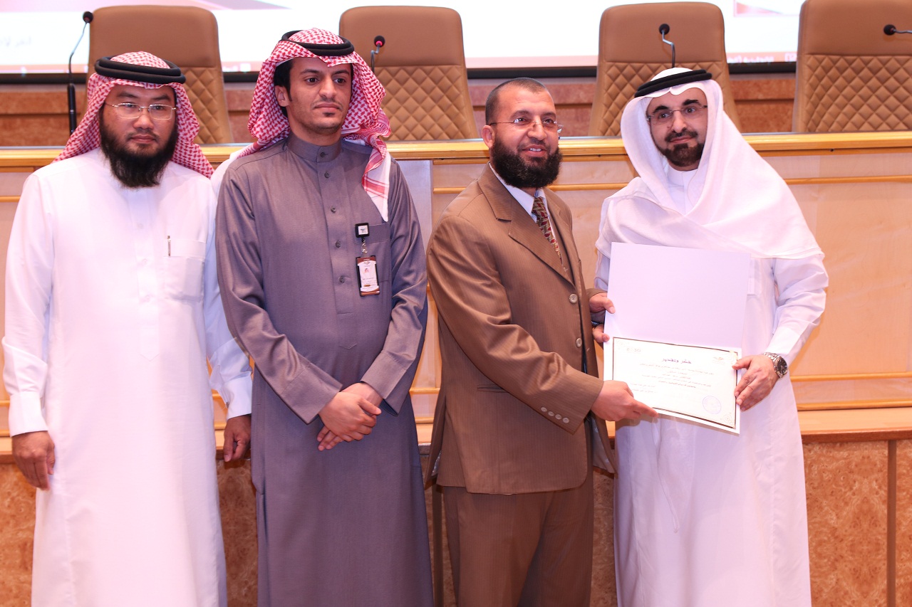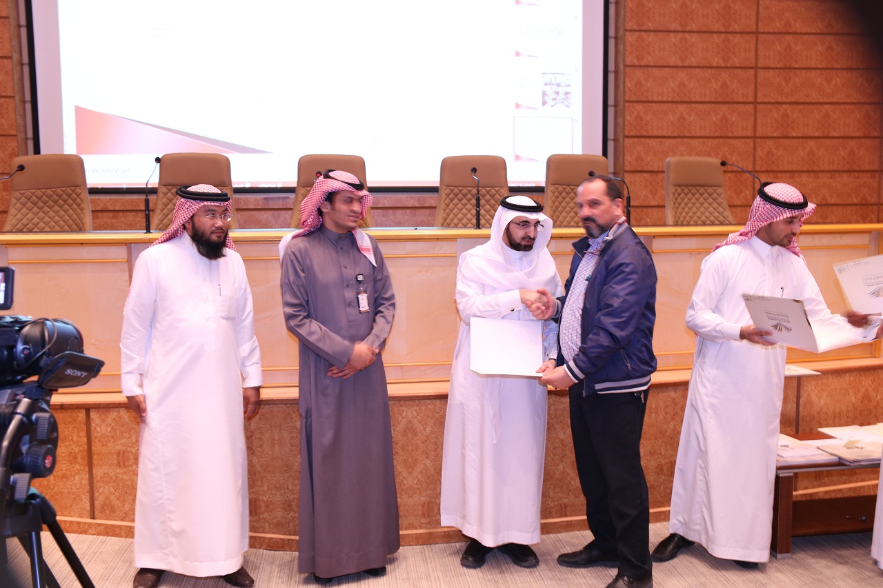 وفي الختام كرم سعادة المشرف على كلية الهندسة الأستاذ الدكتور/ صالح القحطاني وسعادة وكيل عمادة شؤون الطلاب للخدمات الطلابية الدكتور/ عبدالله الشتيلي وسعادة الدكتور / رائد اليوسف وكيل الكلية للشؤون التعليمية والأكاديمية وسعادة أمين الملتقى العلمي الدكتور/ عمر دين المشاركات الفائزة في الملتقى وتم تسليم الجوائز والشهادات وإجراء سحوبات للحاضرين وإلتقاط الصور التذكارية ، بعد ذلك زار الحضور المعرض المصاحب للملتقى.