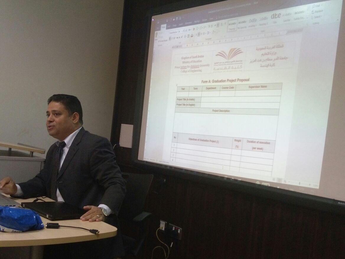 أقامت كلية الهندسة بجامعة الأمير سطام بن عبدالعزيز وبالتعاون مع وحدة الأنشطة الطلابية بالكلية وعلى مدى يومي الأربعاء 28 / 1 / 1439 هـ والخميس 29 / 1 / 1439 هـ ورشة عمل بعنوان "مشروع التخرج الناجح" لطلاب مشاريع التخرج بجميع أقسام الكلية، الهندسة الكهربائية والهندسة الميكانيكية والهندسة المدنية. وقد قدم ورشة العمل هذه مجموعة من أعضاء هيئة التدريس بالكلية وتركزت على تعريف الطلاب بخطوات إنجاز مشروع التخرج والنماذج الجديدة لمشاريع التخرج وإبراز أهم المخرجات التي يحققها مشروع التخرج بالإضافة إلى إبراز دوره في تكوين الطالب و تعزيز فرص الحصول على وظيفة، وقد كانت هذه الورشة فرصة لإجراء نقاش مفتوح أجاب فيه أعضاء هيئة التدريس على العديد من تساؤلات الطلاب حول مشاريع التخرج.