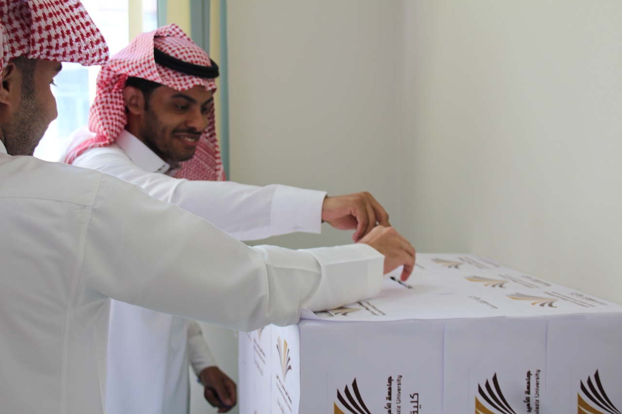 بدأت مطلع الأسبوع  الماضي  انتخابات  المجلس الطلابي وذلك بتوجيه من سعادة عميد الكلية الدكتور محمد بن سعيد  القحطاني نحو تشكيل مجلس طلابي للعام الجامعي الحالي لكي يساهم  في المشاركة في تطوير جميع مايقدم لطلاب الكلية من خدمات وأنشطة. مرت الانتخابات خلال ثلاث مراحل حيث فتحت الكلية باب الترشح لرئاسة المجلس الطلابي  كمرحلة  أولى لتشكيل مجلس طلابي في كلية الهندسة برؤية ودور فاعل وشامل ليكونوا جزء من صنع القرار في كل مايقدم للطلاب من خدمات تعليمية وأكاديمية وأنشطة ودورات تدريبية . عقب ذلك بدأت الحملة الانتخابية للمرشحين ولمدة أربعة ايام كمرحلة ثانية حيث تنافس خمسة  طلاب على  رئاسة المجلس الطلابي  وكانت المرحلة الاخيرة هي  التصويت للمرشحين  في مقر شؤون الطلاب في كلية الهندسة. اتسمت مرحلة التصويت بتفاعل كبير من قبل طلاب الكلية حيث حصل الطالب عبدالرحمن بن عادل الملاحي على ٧٣صوتا أهلته لرئاسة المجلس الطلابي بينما حصل الطالب خالد بن وليد الزعاقي على  ٥٩ صوتا حيث تم ترشيحه كنائب لرئيس المجلس الطلابي. الجدير بالذكر ان المجلس الطلابي الجديد سوف يعقد اجتماعه مع عميد الكلية في بداية الأسبوع القادم حيث سيتم  استعراض واعتماد مخطط اعمال المجلس الطلابي لهذا العام الأكاديمي.
