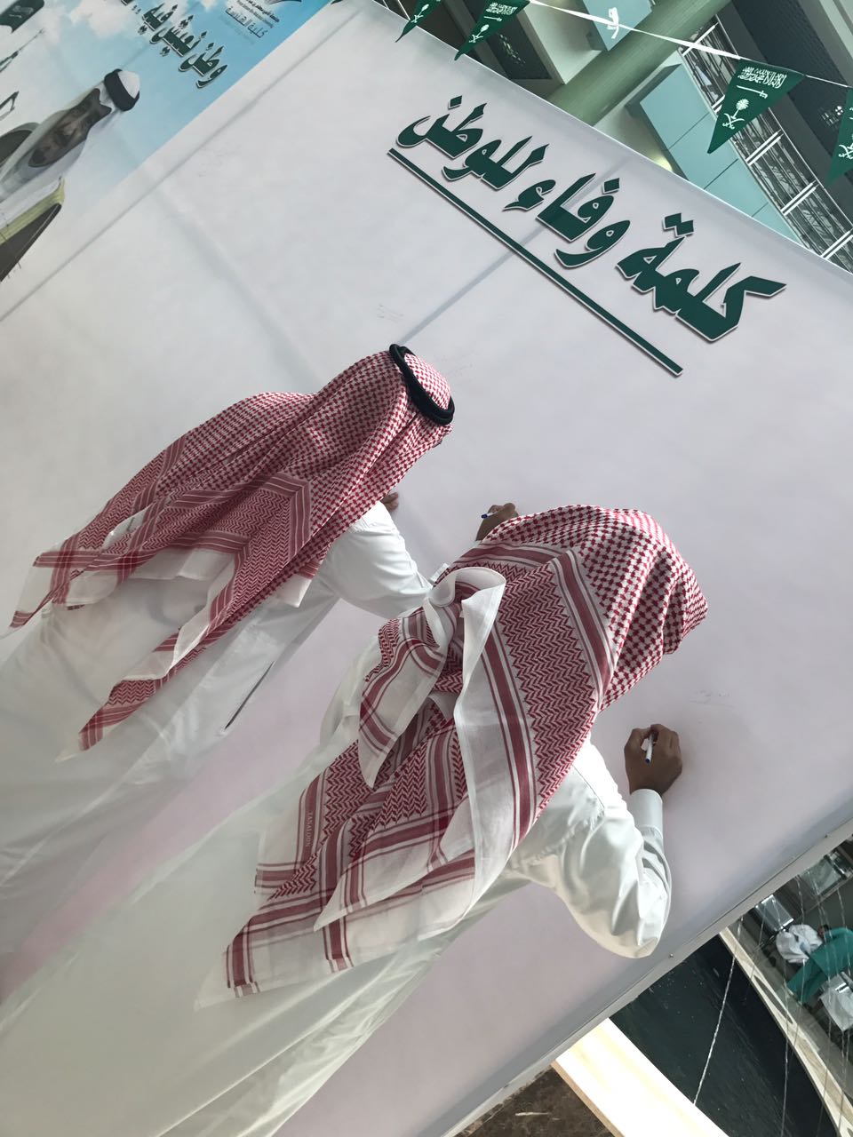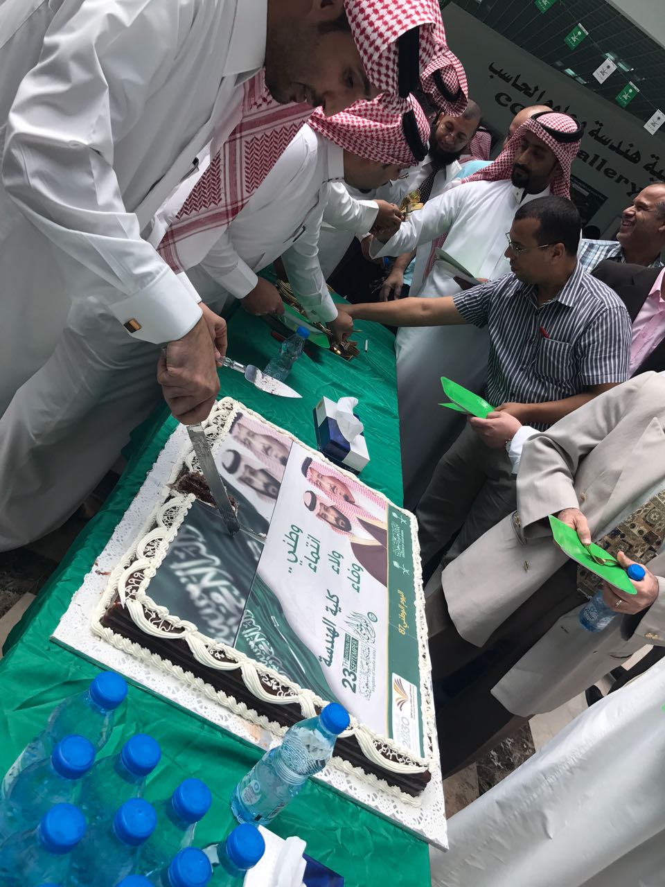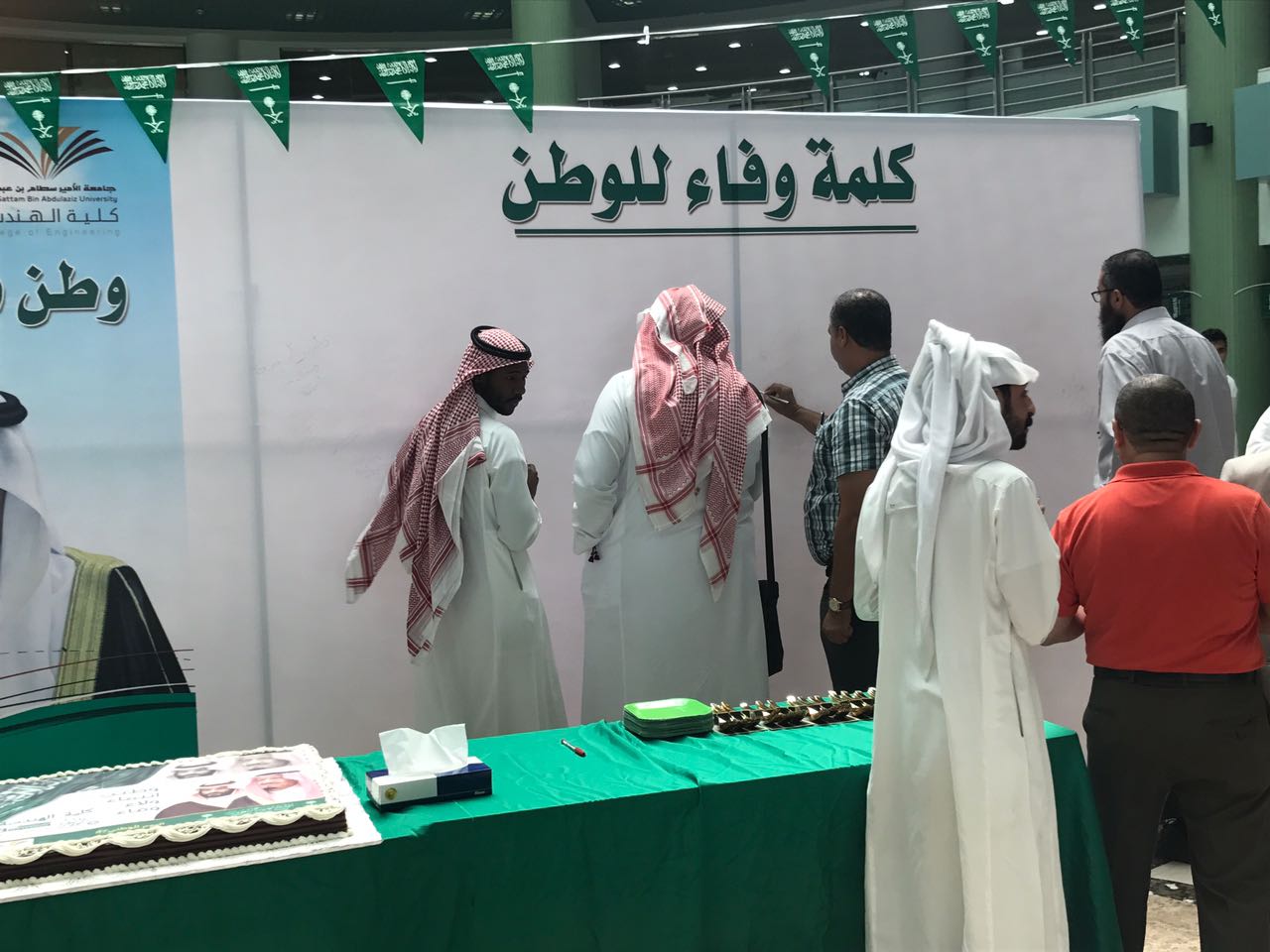 تلا ذلك عرض لفيلم وثائقي عن توحيد المملكة ومراحل نموها وتطورها وكذلك يبرز جهود الملك المؤسس الملك عبدالعزيز – طيب الله ثراه - وجهود أبنائه من بعده والذين اسهموا في تطور ورقي هذا البلد المعطاء عبر عدة عقود من الزمن. وكانت مشاعر طلاب الكلية حاضرة في هذه المناسبة حيث ألقى الطالب/ عبدالرحمن الملاحي كلمة الطلاب بهذه المناسبة، بعدها كان هناك فقرة لأفضل عبارات مهداة لجنود الوطن وبهذا انتهت فعاليات اليوم الأول.