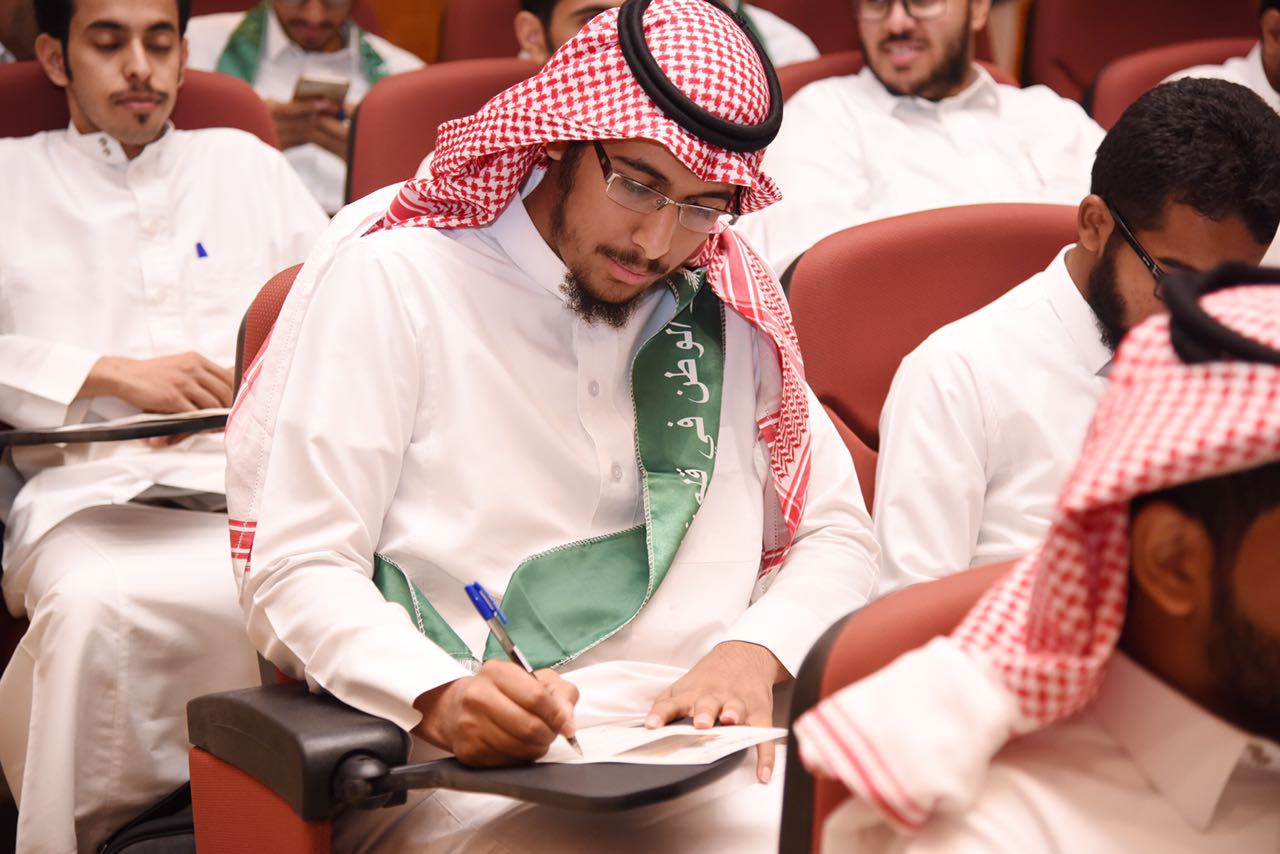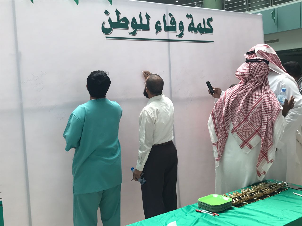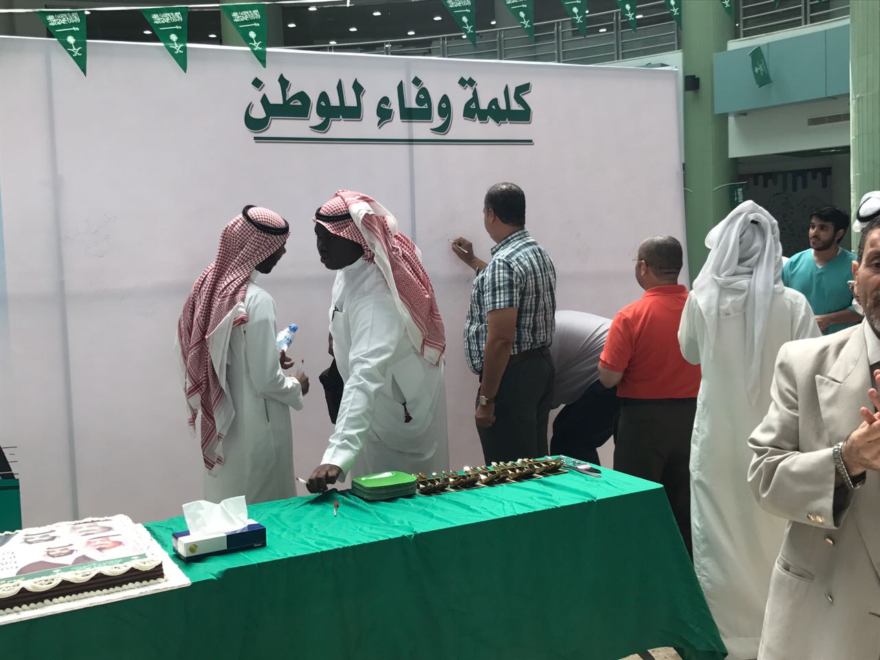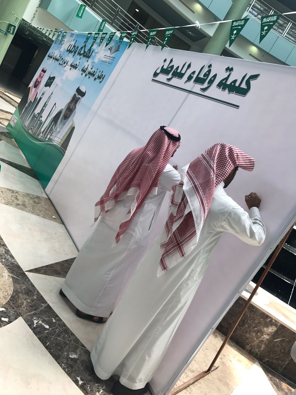 تلا ذلك عرض لفيلم وثائقي عن توحيد المملكة ومراحل نموها وتطورها وكذلك يبرز جهود الملك المؤسس الملك عبدالعزيز – طيب الله ثراه - وجهود أبنائه من بعده والذين اسهموا في تطور ورقي هذا البلد المعطاء عبر عدة عقود من الزمن. وكانت مشاعر طلاب الكلية حاضرة في هذه المناسبة حيث ألقى الطالب/ عبدالرحمن الملاحي كلمة الطلاب بهذه المناسبة، بعدها كان هناك فقرة لأفضل عبارات مهداة لجنود الوطن وبهذا انتهت فعاليات اليوم الأول.