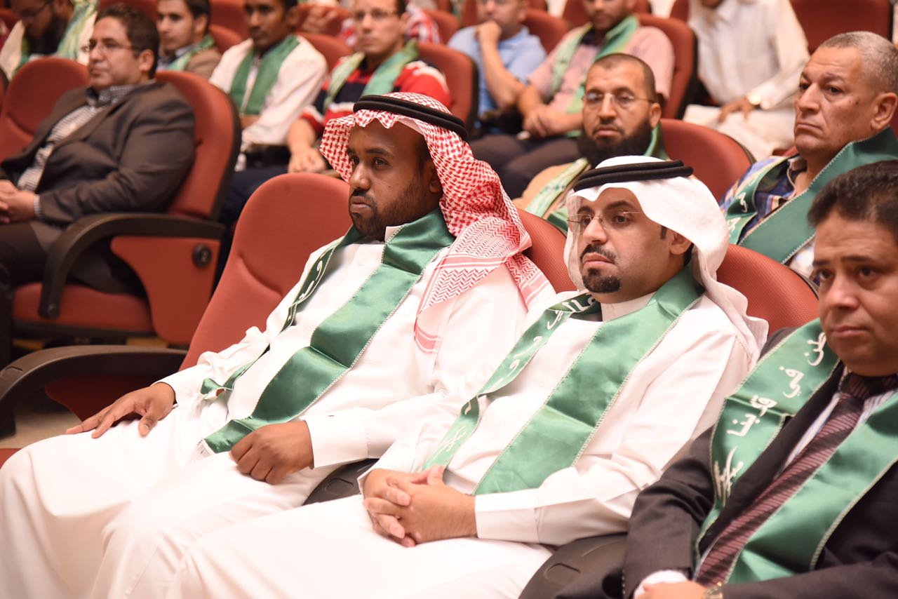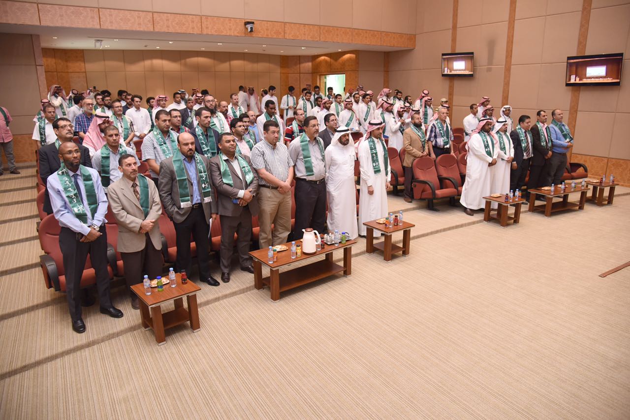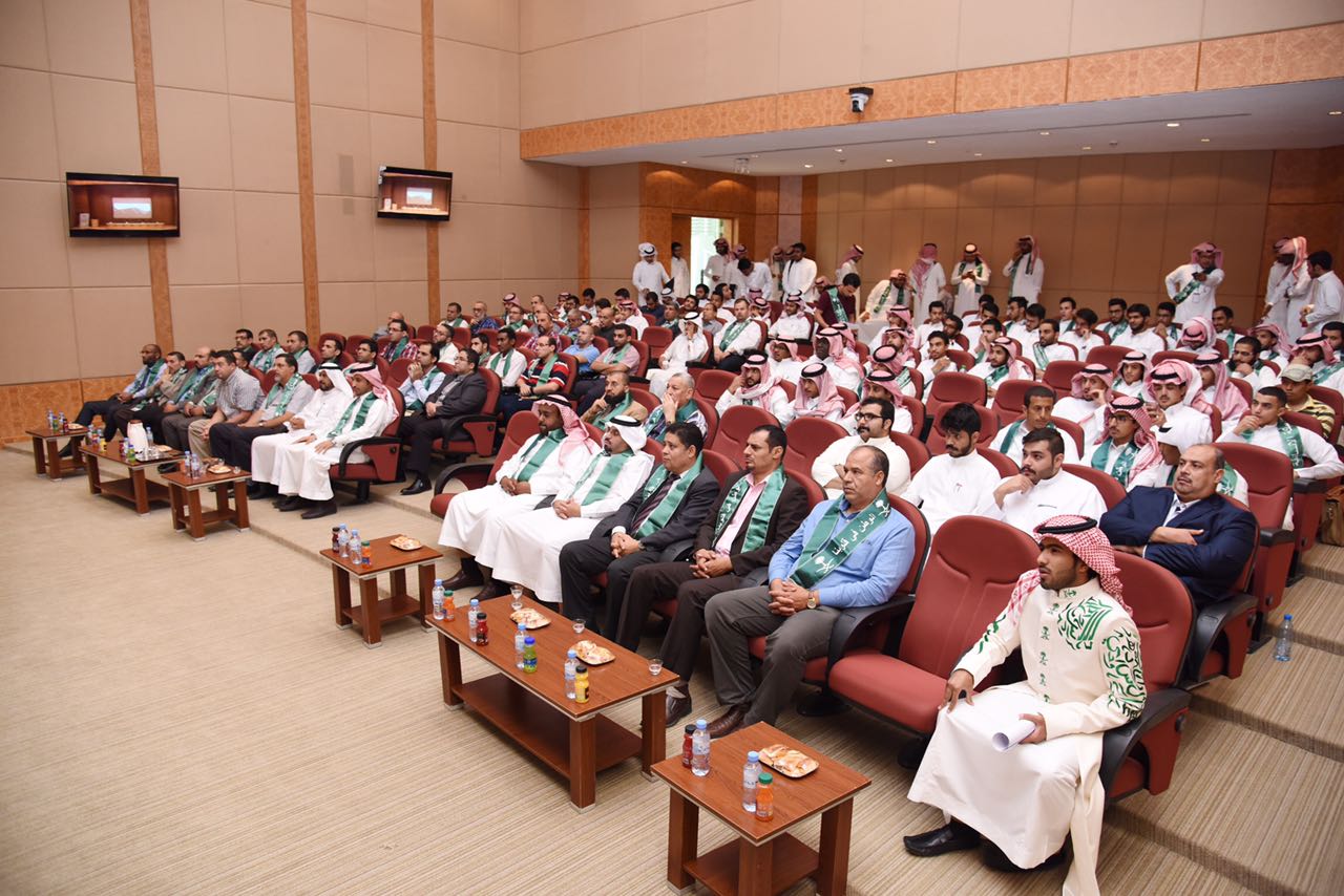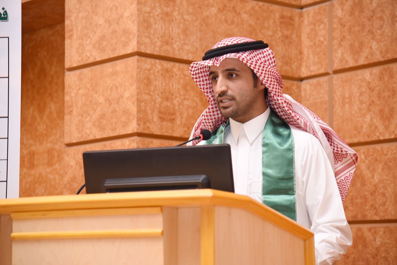 وقد افتتح الحفل بالسلام الوطني بعد ذلك قدم الطالب/ خالد الزعاقي الحفل الخطابي بهذه المناسبة حيث تليت آيات من الذكر الحكيم تلاها الطالب/ لؤي بن عبدالله الرويتع ، عقب ذلك كلمة لسعادة المشرف على كلية الهندسة المكلف الدكتور رائد بن عبدالله اليوسف عبر فيها عن مشاعر الاعتزاز والفخر والولاء للدين ثم المليك والإنتماء للوطن واستذكر سعادته الدور الريادي لمؤسس هذا الكيان الملك عبدالعزيز طيب الله ثراه وأبناؤه من بعده وما نقطفه من ثمرة جهودهم المباركة حتى أصبحنا نعيش واقع الأمن والأمان والرغد والإزدهار. وأضاف، أن حب الوطن والوطنية ليست شعارات ولا أهازيج، بل إنجاز وعمل وبناء. ودعى الله أن يعز ديننا و يحمي بلدنا ويحفظ لنا ولاة أمرنا ويرحم شهدائنا وأن يثبت مرابطينا. وفي ختام كلمته، قدم شكره للجان المشرفة على هذه الفعالية وعلى رأسها إدارة كلية الهندسة وفي لجنة الأنشطة الطلابية بالكلية واللجان المساندة لها.
