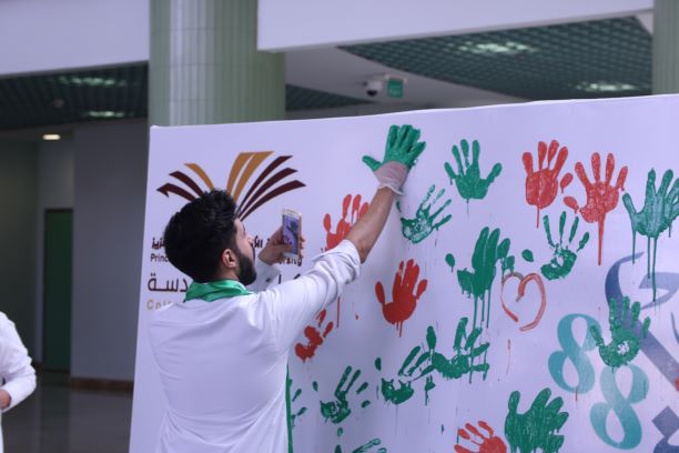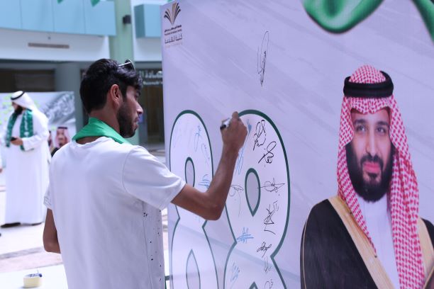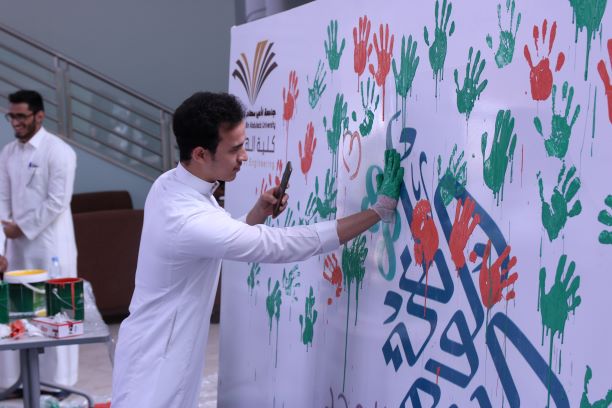 بعد ذلك تم تدشين جدارية "بصمة وطن" والتي تحمل بصمة وتواقيع منسوبي الكلية بهذه المناسبة.