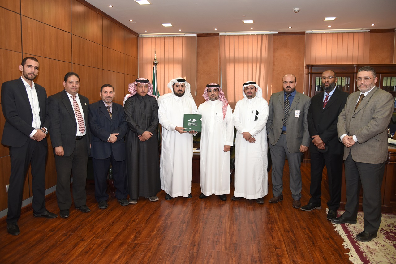 وفي ختام اللقاء قام سعادة عميد الكلية وأعضاء مجلسها بتسليم تقرير الكلية السنوي لمعاليه وأخذ بعض الصور التذكارية.