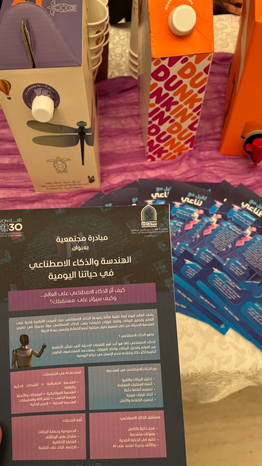 في إطار المسؤولية المجتمعية لكلية الهندسة (شطر الطالبات) بجامعة الأمير سطام بن عبد العزيز، نظّمت الدكتورة تيسير علي الفقيه يوم الاثنين 6 أبريل 2026م الموافق ل18 شوال 1447هـ مبادرة بعنوان "الهندسة والذكاء الاصطناعي في حياتنا اليومية"، استهدفت طالبات المرحلة الثانوية بالخرج، حيث تم تقديم محاضرة تعريفية بتخصصات كلية الهندسة وعلاقة الذكاء الاصطناعي بالمجالات الهندسية، إلى جانب توعية الطالبات بالاستخدام الآمن للذكاء الاصطناعي، كما تم تنفيذ ورشة عمل تطبيقية بالتعاون مع طالبات قسم الهندسة الكهربائية (المستوى العاشر) لتدريب الحاضرات على استخدام أدوات الذكاء الاصطناعي، وقد لاقت المبادرة استحساناً كبيراً من الطالبات ومشرفاتهن، وتم توزيع مطويات توعوية حول الذكاء الاصطناعي والطرق الآمنة لاستخدامه، في خطوة تعزز دور الجامعة في خدمة المجتمع ونشر الثقافة التقنية الواعية.