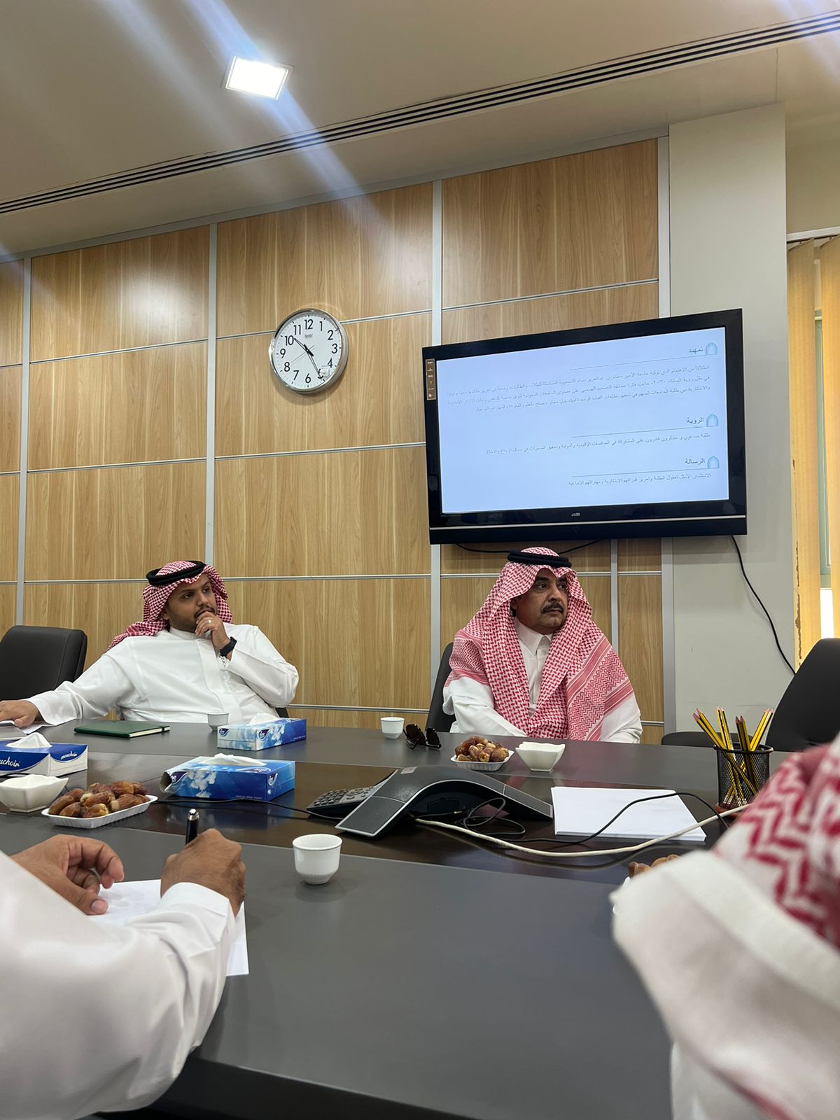 وخلال اللقاء، تم مناقشة عدد من المحاور تتناول بحث سبل تعزيز التعاون بين الكلية والعمادة ، وخطط التطوير فيما يصب في مصلحة الطلاب ويعود بالنفع عليهم.