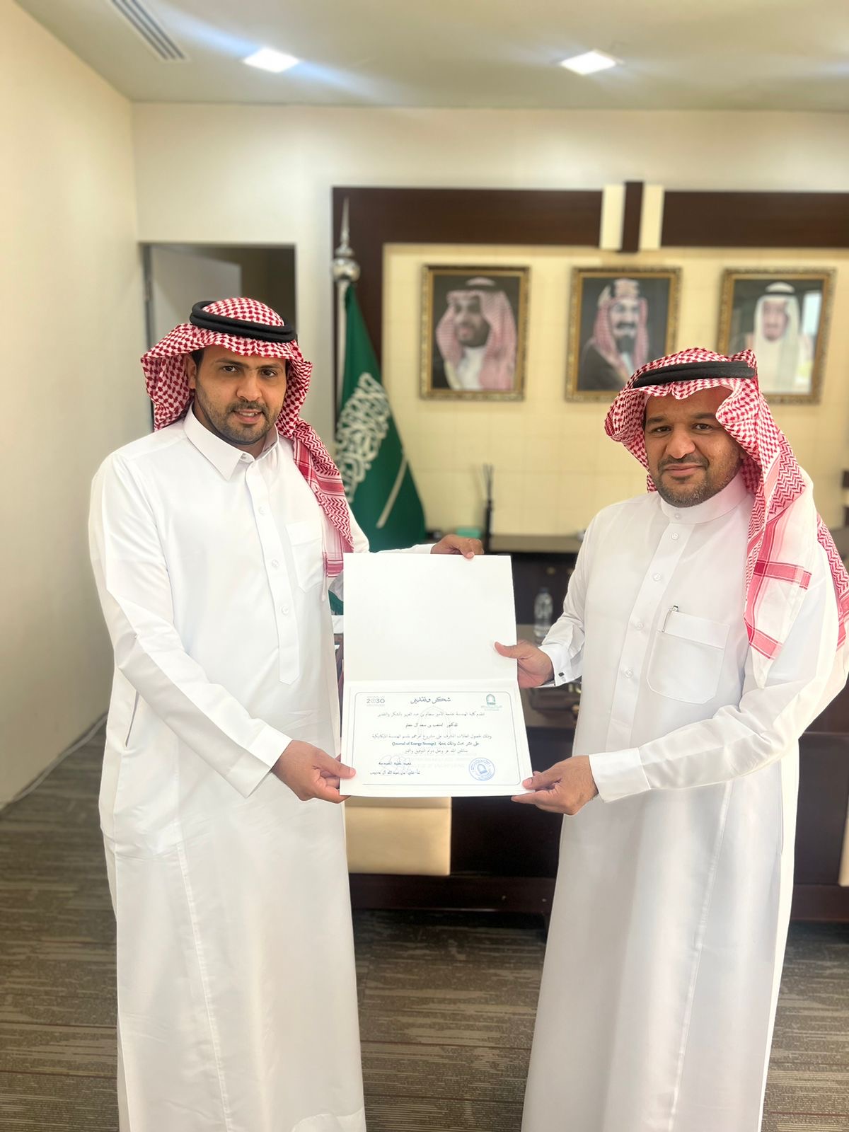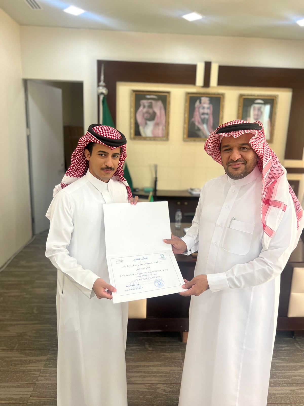 في خطوة تعكس الدعم المتواصل من كلية الهندسة للطلاب، قام عميد الكلية بلقاء خاص مع الطالبين فيصل الرويس و فهد العتيبي الذين حققوا إنجازًا مهمًا من خلال نشر بحثهم في مجلة علمية ذات معامل تأثير 8.9 - Q1