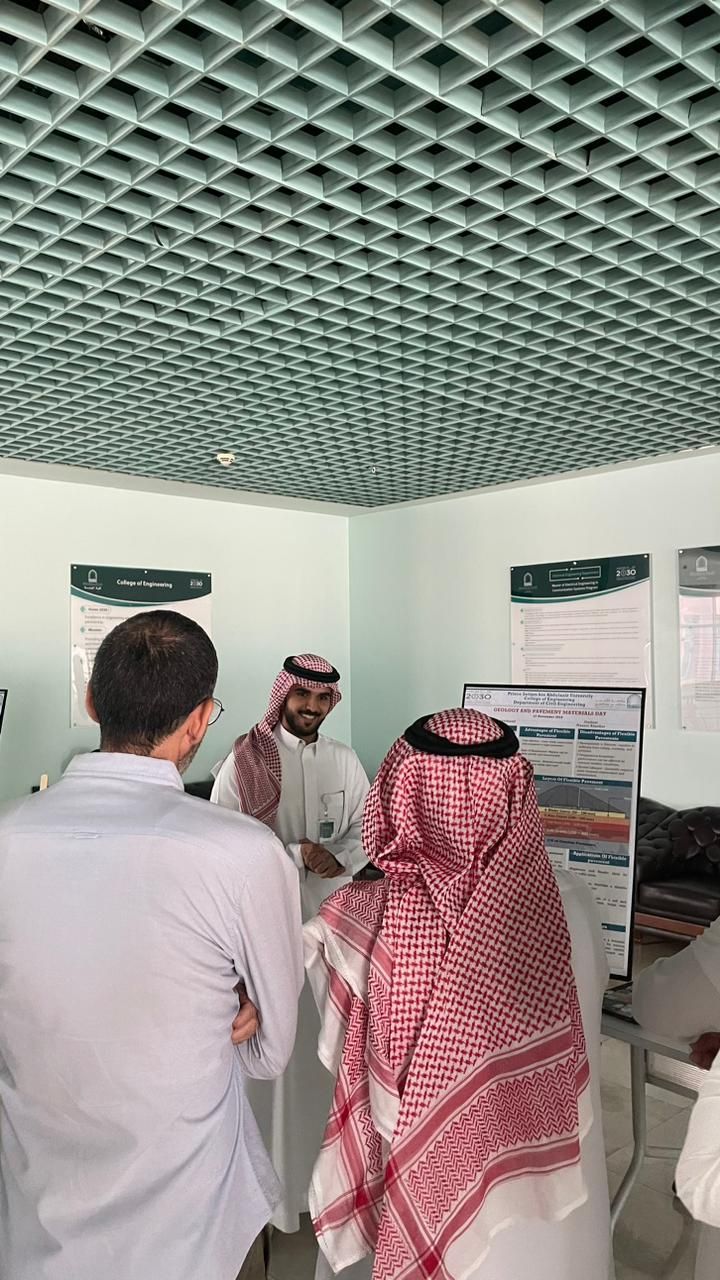 نظم قسم الهندسة المدنية بكلية الهندسة في جامعة الأمير سطام بن عبدالعزيز معرضًا بعنوان "يوم الجيولوجيا ومواد الرصف"، بهدف تسليط الضوء على أهمية علم الجيولوجيا ودوره في تصميم مشاريع البنية التحتية، خاصة المتعلقة بمواد الرصف وتطبيقاتها.