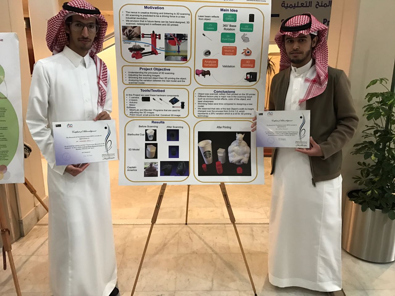 نظمت لجنة الندوات والمؤتمرات في كلية الهندسة مشاركة عدد من طلاب الكلية في ملتقى أبحاث طلاب المرحلة الجامعية والذي نظمته جامعة الأمير سلطان في منتصف الأسبوع الماضي حيث اعتمدت اللجنة الفنية للملتقى مشاركة عدد من الأبحاث العلمية المقدمة من طلاب الكلية . ومثل الكلية في هذا الملتقى من قسم الهندسة الكهربائية الطالب فهد حمد ال سعيد والطالب عبدالله سعد المقرن والطالب مشاري فالح الحارثي والطالب فيصل مصلح العنزي والطالب صالح فهد العيد ومن قسم الهندسة المكيانيكية شارك الطالب محمد علي الغامدي. وبهذه المناسبة عبر سعادة عميد كلية الهندسة الدكتور محمد بن سعيد القحطاني عن سروره واعتزازه بتميز طلاب الكلية ومشاركتهم في هذا الملتقى الطلابي السنوي الذي يتنافس فيه طلاب الجامعات نحو تقديم أبحاثهم ومشاريعهم وكذلك الاطلاع على أفكار و مشاريع بحثية يقدمها طلاب الجامعات الاخرى، شاكرا ومقدرا الدعم الذي تجده الكلية وطلابها من معالي مدير الجامعة الدكتور عبدالرحمن بن محمد العاصمي وسعادة وكيل الجامعة للشؤون الاكاديمية والتعليمية الدكتور عبدالرحمن بن ابراهيم الخضيري. كذلك تقدم رئيس لجنة الندوات والمؤتمرات بالكلية الدكتور فريح بن شريده العنزي بالتهنئة لطلاب الكلية المشاركين في الملتقى على تميزهم في تقديم مشاريعهم البحثية وكذلك لعمادة الكلية على دعمهم اللامحدود لكل مايسهم في تطور وتميز طلاب الكلية مبينا انه سيتم العمل على تطوير وتفعيل مشاركات طلاب الكلية في المنتديات والملتقيات الطلابية بشكل أكبر بهدف عرض المشاريع المتميزة للطلاب وكذلك إسهاما للتبادل المعرفي مع طلاب الجامعات الأخرى .