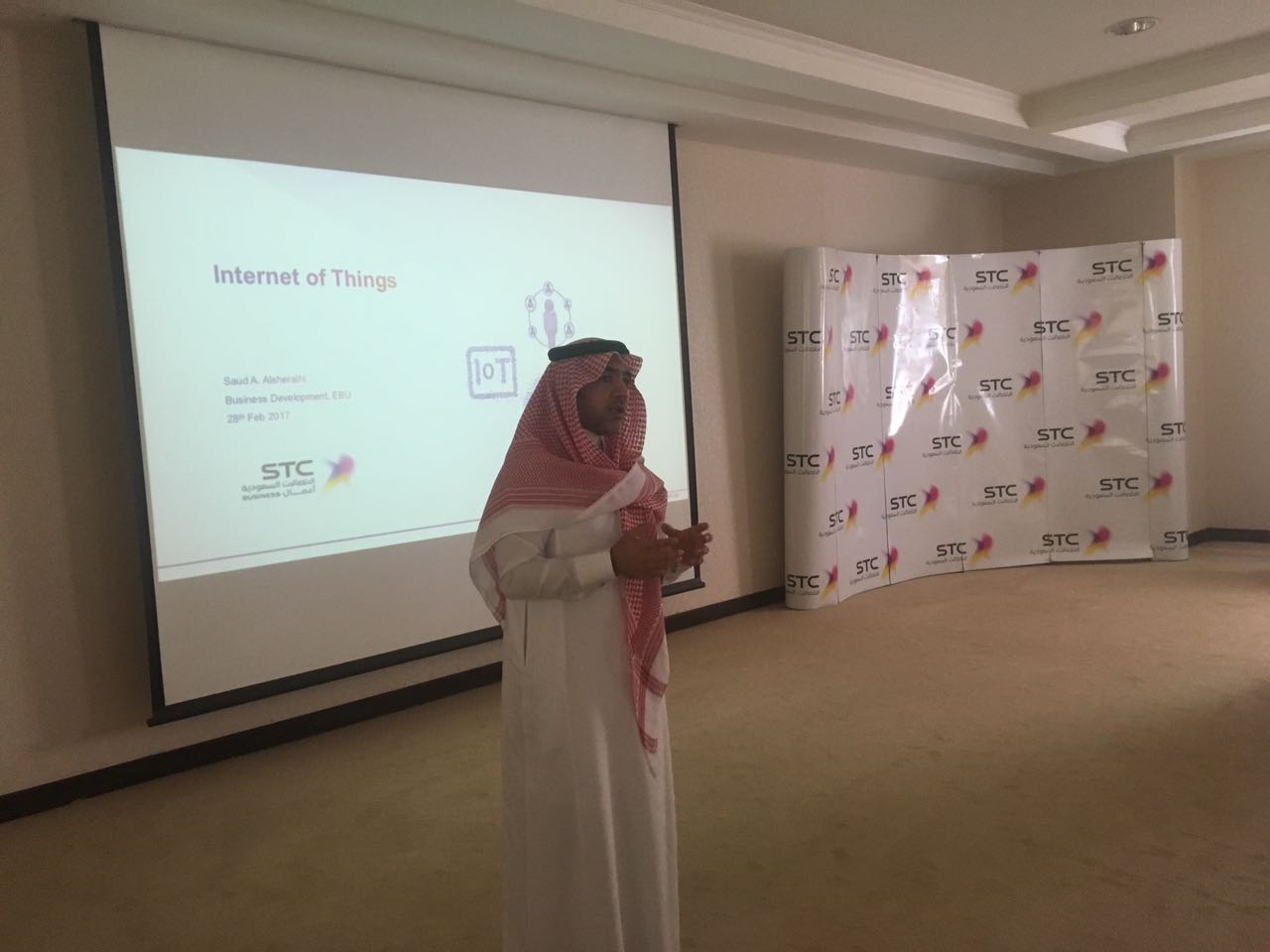 في بداية الزيارة تم عرض نبذة عن التطورات في مجال الاتصالات والتوجهات المستقبلية قدمه سعادة المهندس عبدالعزيز الحيدر مدير عام مبيعات القطاع الحكومي وعضو المجلس الاستشاري لكلية الهندسة بالخرج، بعد ذلك تم عرض ايجاز عن انترنت الاشياء IOT قدمه سعادة المهندس سعود الشريعي مدير عام تطوير الاعمال .