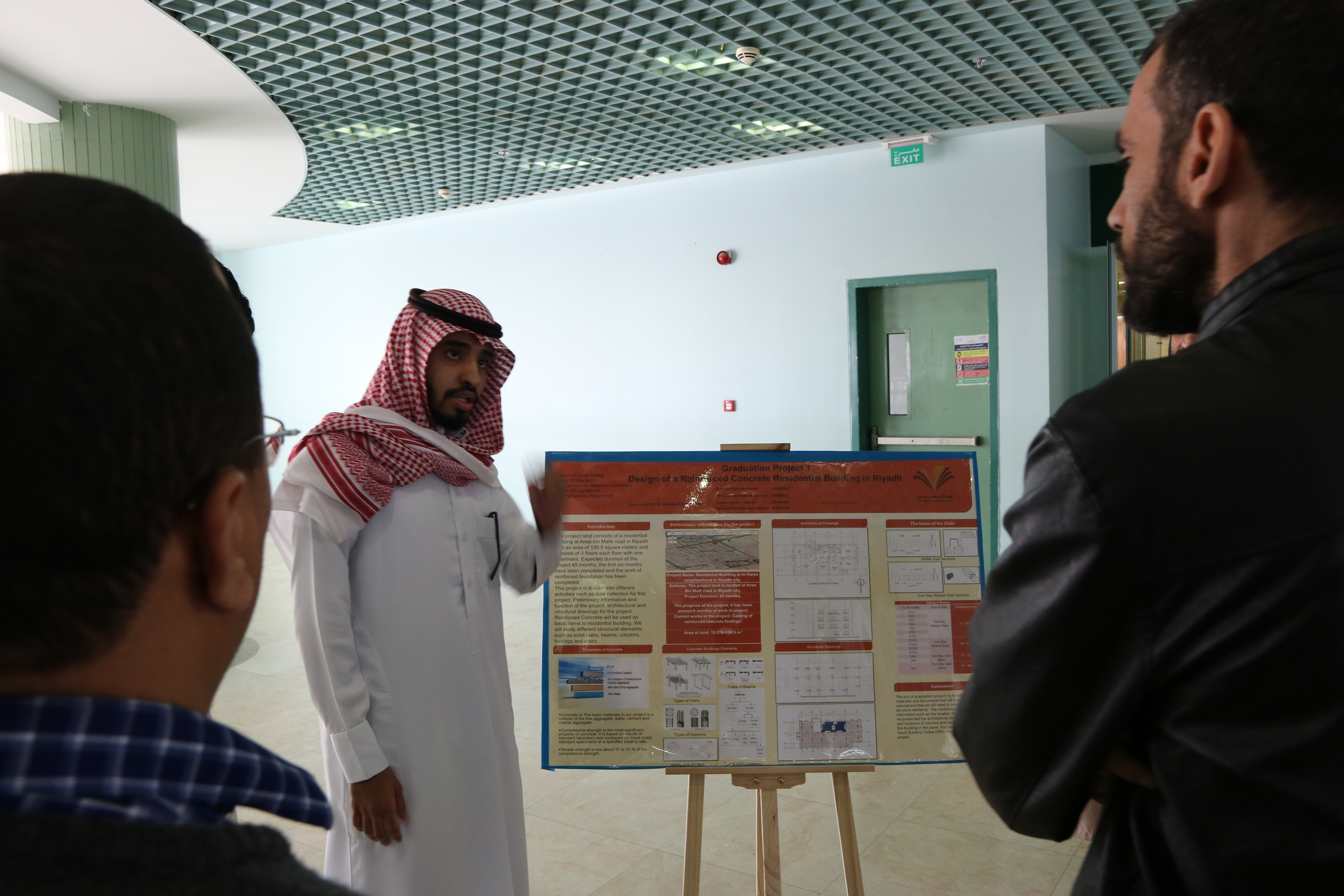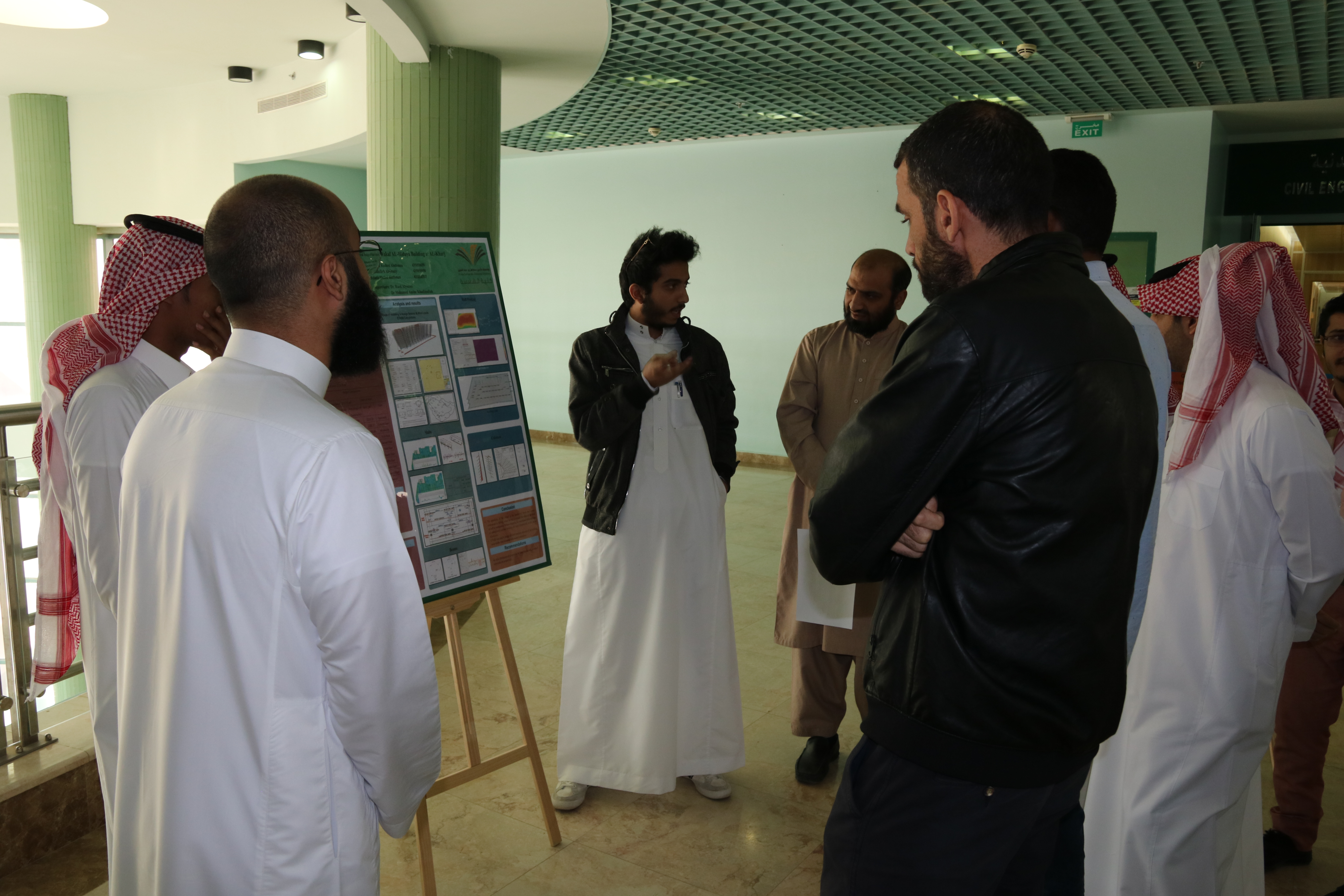 نظم قسم الهندسة المدنية بكلية الهندسة بالخرج فعالية عرض ملصقات مشاريع التخرج لطلاب المستويين التاسع والعاشر في البهو المقابل لقسم الهندسة المدنية بالدور الثاني بتاريخ 31/11/2019. هذا وقد اقيمت هذه الفعالية تحت رعاية سعادة د. علي ال دريس وكيل الكلية للشؤون التعليمية والأكاديمية، وسعادة الدكتور عبدالمجيد السلطان رئيس قسم الهندسة المدنية، وحضور سعادة أعضاء هيئة التدريس بالقسم، وعدد من منسوبي القسم، وطلاب القسم. وقد قام بتنظيم الفعالية فريق من لجنة مشاريع التخرج بالقسم ويتمثل في د. فهد أسلم، م. عبد العظيم مصطفى. وقد اشتملت الفعالية على تعريف طلاب مشاريع التخرج التي تم انجازها خلال الفصل الدراسي الأول تحت إشراف عدد من أعضاء هيئة التدريس بالقسم بمحتوى تلك المشاريع، وما تهدف إليه، والطرق المستخدمة، وكيف التعامل واستخدام المعرفة التي تحصلوا عليها خلال فترة دراستهم، والنتائج التي توصلوا إليها. الطلاب. وقد رد الطلاب على الأسئلة التي وجهت لهم من قبل اللجنة المسؤولة عن تقويم الملصقات، ومن قبل الحضور. وتعد هذة الفعالية من الفعاليات المفيدة جدا للتعريف بالمجهود الكبير الذي بذل في إعداد هذه المشاريع، وكذلك لتعريف الطلاب الجدد بطريقة إعداد وعرض مشاريع التخرج. وفي ختام الفعالية تم التقاط الصور التذكارية.