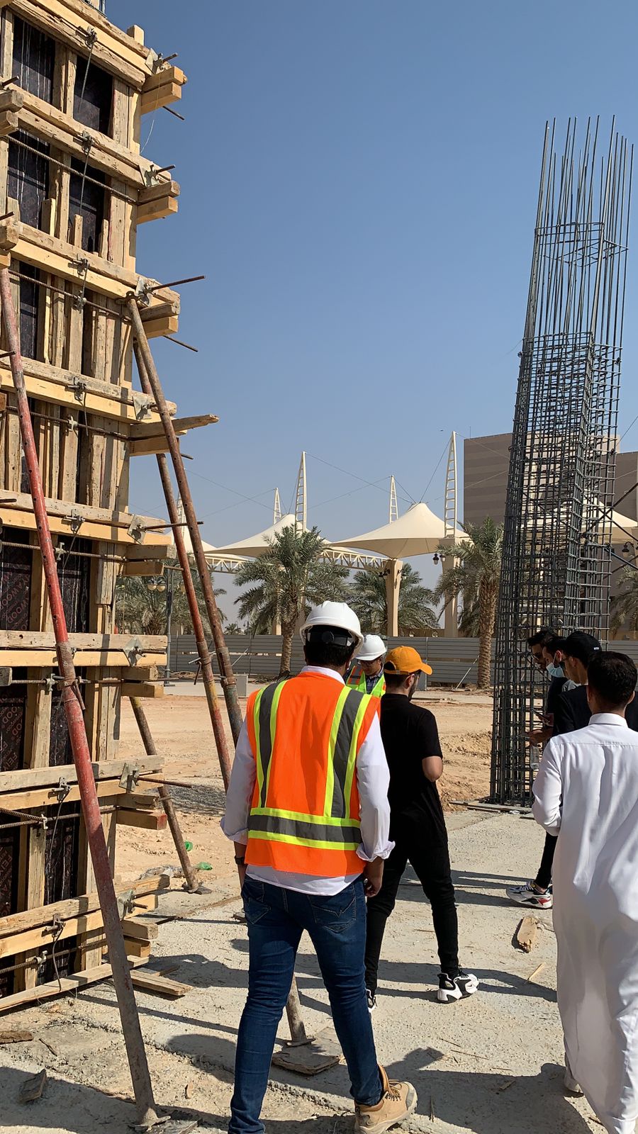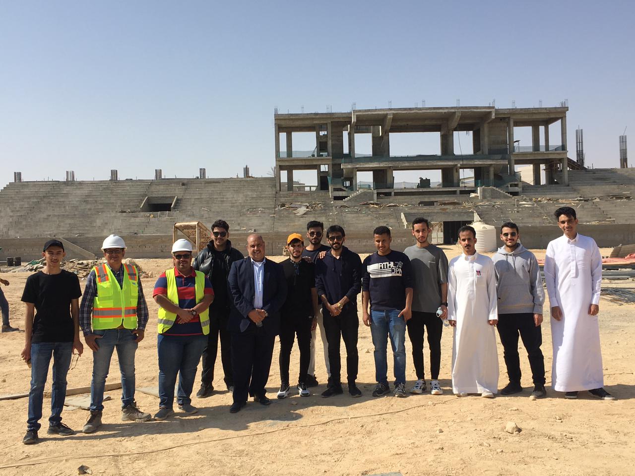 في إطار اهتمام قسم الهندسة المدنية بكلية الهندسة بالخرج بجامعة الأمير سطام بن عبد العزيز بالزيارات الميدانية وحرصه على ربط الجانب النظري بالحياة العملية، وفي إطار الأنشطة المتعلقة بالمنشآت الخرسانية المسلحة نظم قسم الهندسة المدنية برعاية سعادة الدكتور رائد اليوسف عميد الكلية وسعادة الدكتور سلطان المعيذر رئيس قسم الهندسة المدنية وتحت إشراف سعادة الدكتور محمد البحار عضو هيئة التدريس بالقسم وأستاذ مقرري (تصميم الخرسانة المسلحة -1) وإنشاء المباني زيارة ميدانية لطلاب المقررين لمشروع إنشاء الملعب الرياضي بالمدينة الجامعية بالخرج وذلك في يومي الأربعاء والخميس الموافق 17- 18 /11/2021 م، حيث تم القيام بجولة تعريفية داخل المشروع للتعرف على الأنظمة الإنشائية المستخدمة في تصميم المدرجات الخرسانية والمقصورة الأمامية وطرق التنفيذ المناسبة لهذه الأنظمة الإنشائية، والاطلاع على التقنيات الحديثة والمواد المستخدمة في التنفيذ والعوامل التي تراعي عند تجهيز الشدات المعدنية والخشبية وتسليح العناصر الإنشائية وتشمل البلاطات والكمرات والأعمدة والحوائط الخرسانية، وتم الاطلاع على نظام البلاطات الخرسانية المصمتة في اتجاه واحد. وقد اتاحت الزيارة فرصة كبيرة للطلاب للاطلاع على العديد من الأمور العملية التي يجب مراعاتها عند تصميم مثل هذه المشاريع.