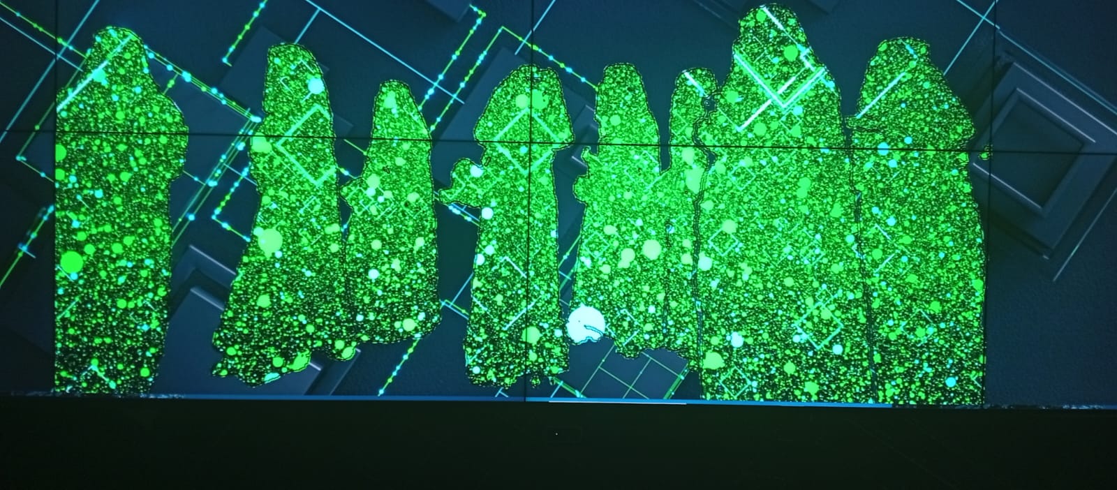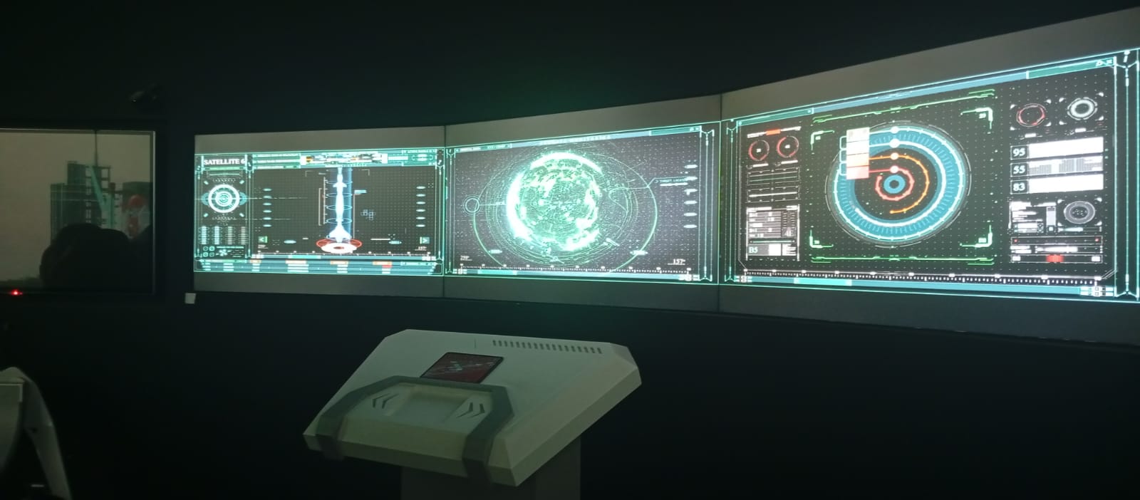 - مجسمات فضائية وتقنيات المحاكاة التي تعكس مستقبل الاتصالات وتقنية المعلومات.