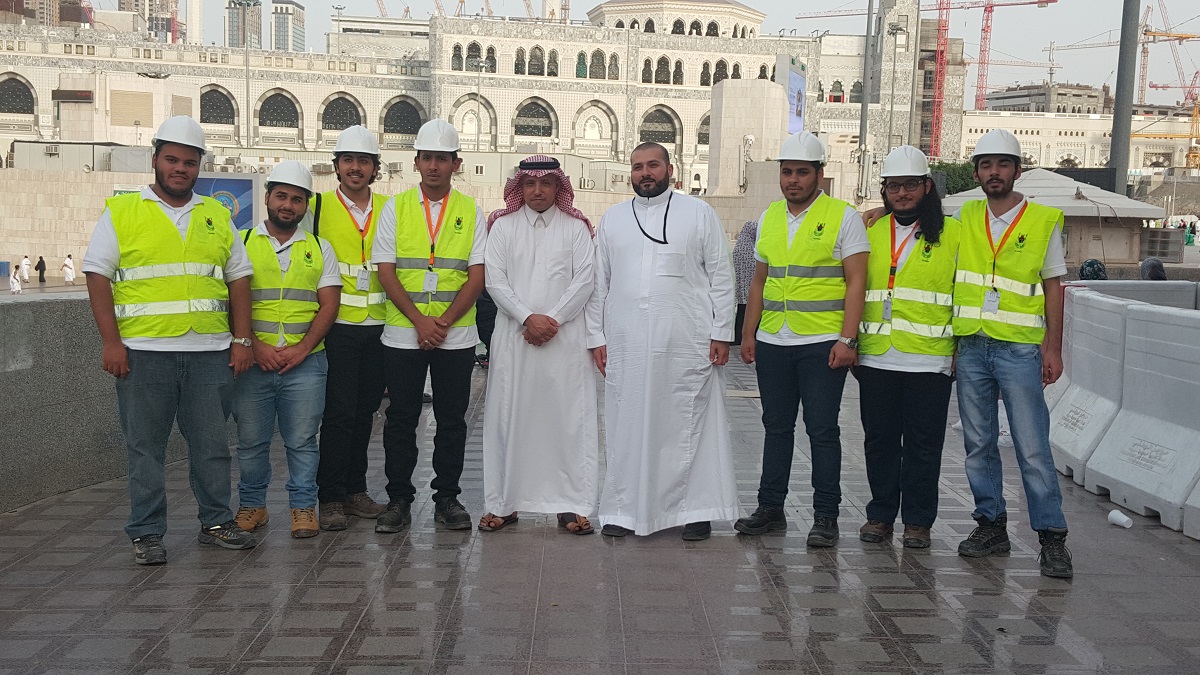 من أجل الإشراف والمتابعة لبرامج التدريب الميداني الصيفي وبتوجيه من سعادة عميد الكلية الدكتور محمد بن سعيد القحطاني نظمتلجنة التدريب الصيفي بالكلية زيارة للطلاب المتدربين في مشاريع التوسعة للمسجد الحرام التي تنفذها شركة بن لادن وتشرف عليها اللجنة الفنية لمشروعات خادم الحرمين الشريفين لتوسعة المسجد الحرام. حيث التقى رئيس لجنة التدريب الصيفي الدكتور فريح بن شريده العنزي بالمسؤولين عن التدريب ونقل لهم تحيات وشكر عميد الكلية ومسؤوليها،كما أطلع من خلال جولة ميدانية على البرنامج التدريبي التنفيذي والذي وجده شاملاً لكل المهارات والمعارف العملية التي يحتاجها الطلاب وتسهم في إعدادهم لسوق العمل.وفي لقاء خاص مع الطلاب المتدربين حثهم سعادته على مضاعفة الجهد من اجل الاستفادة من هذه الفرصة المميزة للتدريب في أضخم مشاريع تنفذها حكومة خادم الحرمين الشريفين وتعتبر مفخرة لكل من يشارك بها. وقد تم اطلاعهم أيضاً على متطلبات التدريب من تقارير دورية ونهائية واستبيان لفترة التدريب مناقشا معهم اية صعوبات تواجههم لحلها مع إدارة التدريب بالمشروعات. الجدير بالذكر أن عدد المتدربين من طلاب الكلية عشرة متدربين وكلهم من قسم الهندسة المدنية.