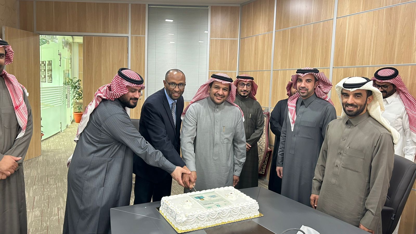 The College of Engineering celebrated the promotion of Dr. Habib bin Basha to the rank of Distinguished Professor in the Department of Mechanical Engineering. The celebration took place in the meeting hall, with the presence of the esteemed Dean of the college, Dr. Ali bin Abdullah Al-Drees, along with several faculty members. The honoree expressed his gratitude for this wonderful gesture and thanked the Dean of the college and all the colleagues who organized the celebration, wishing continued success and prosperity.